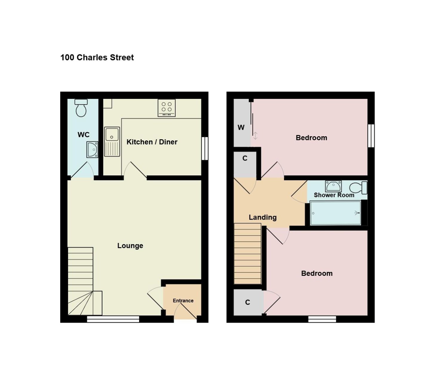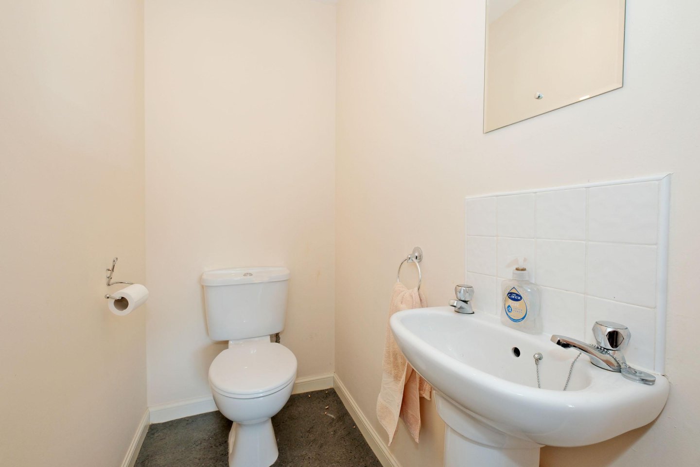 Cloakroom: Fitted with a white wc and wash-hand basin. Vinyl floor covering. Xpelair. Ceiling light. Radiator. Usual fitments.