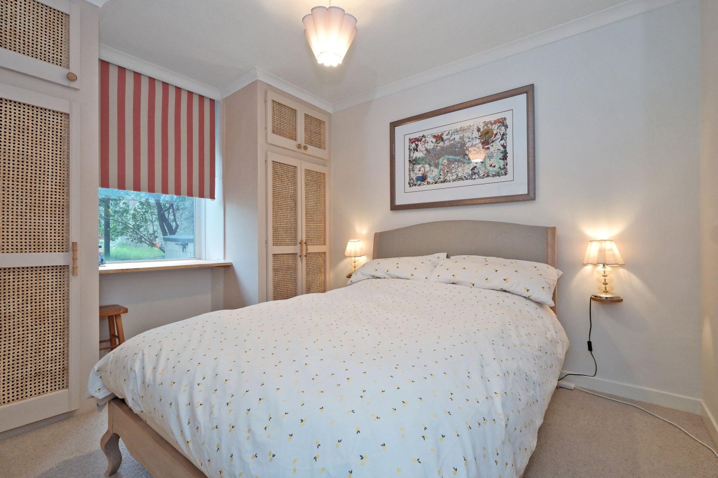 Double Bedroom: 3.66m x 2.61m (12’ x 8’7”) approx. Window, with night and day blinds, overlooking the rear garden. Fitted wardrobes, with hanging rails and shelving, with grey louvre doors. Fitted carpet. Single radiator. Central light fitment. Telephone point.