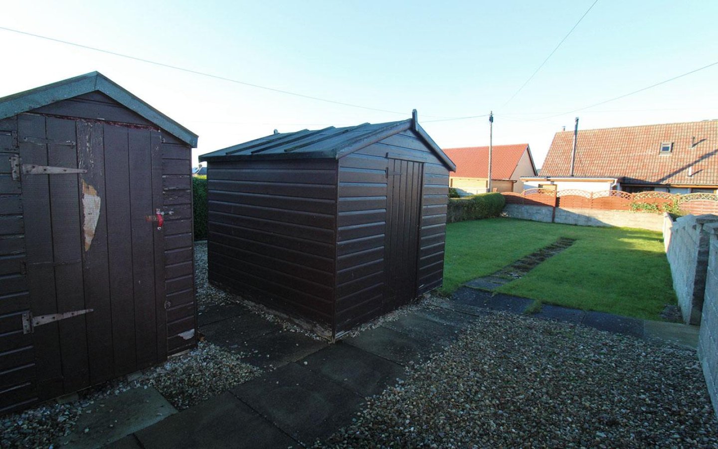 The front garden is laid to stone chip with a path leading up to the front door. The rear garden has an area of stone chip which houses both wooden sheds and a large area laid to lawn.