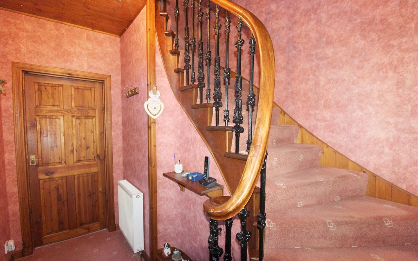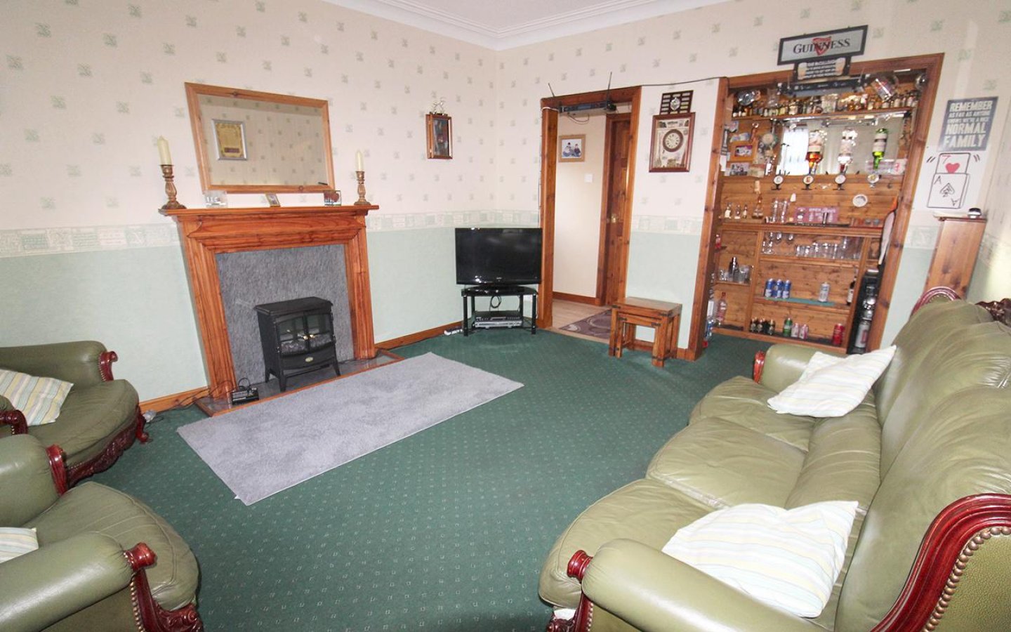 The lounge is the second public room from the hall and has a built-in bar. The lounge has a window to the front with a deep display sill and has a wooden fire surround with an electric fire. The bar area has been fitted with shelving, optics and space for a mini fridge. From the lounge a door leads to the side vestibule which has an exterior uPVC door which opens onto Hall Street.