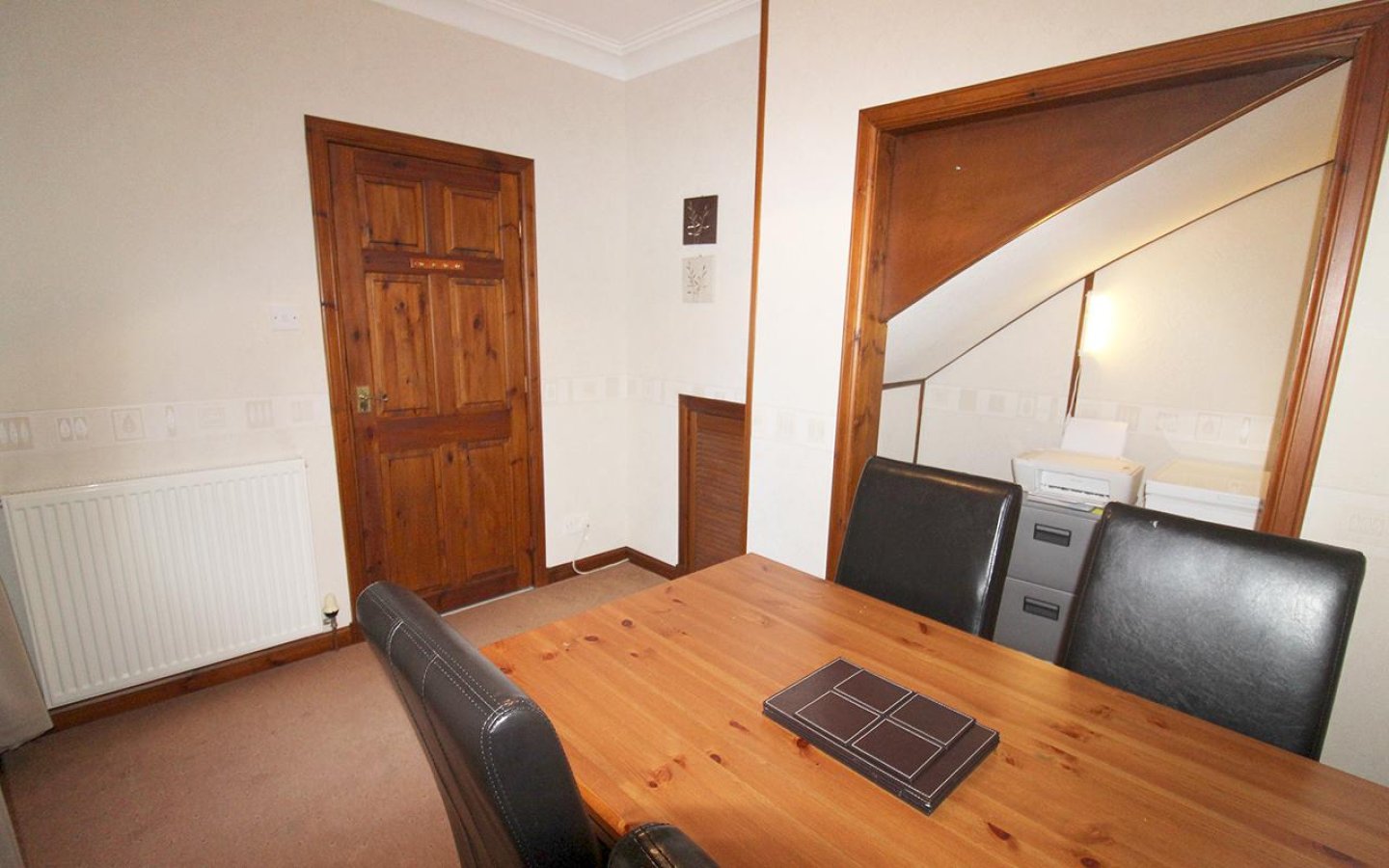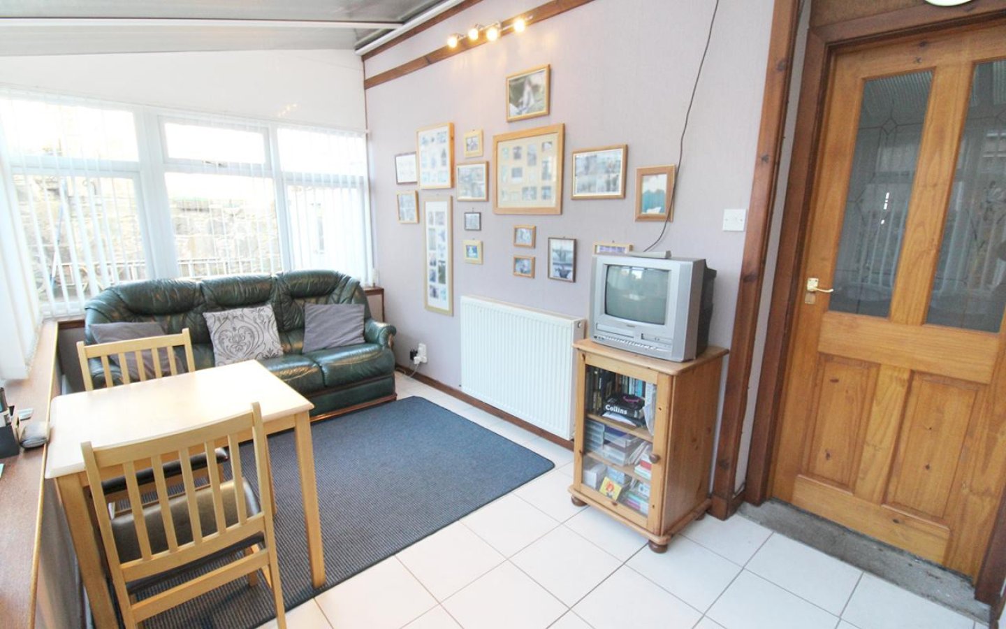 The dining room is accessed directly from the living room and has a window to the rear. The dining room offers storage by way of a shelved cupboard and under stair cupboard. Additional space has been opened under the stairs. The rear hall opens into the conservatory and also has a large storage cupboard which houses the boiler. The conservatory is a wonderful room from which the garden can be enjoyed. The conservatory has fitted blinds, a tiled floor and a glazed door out to the rear garden.