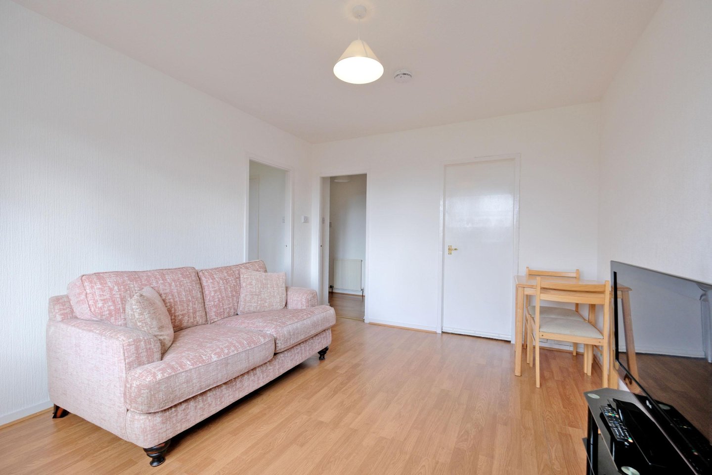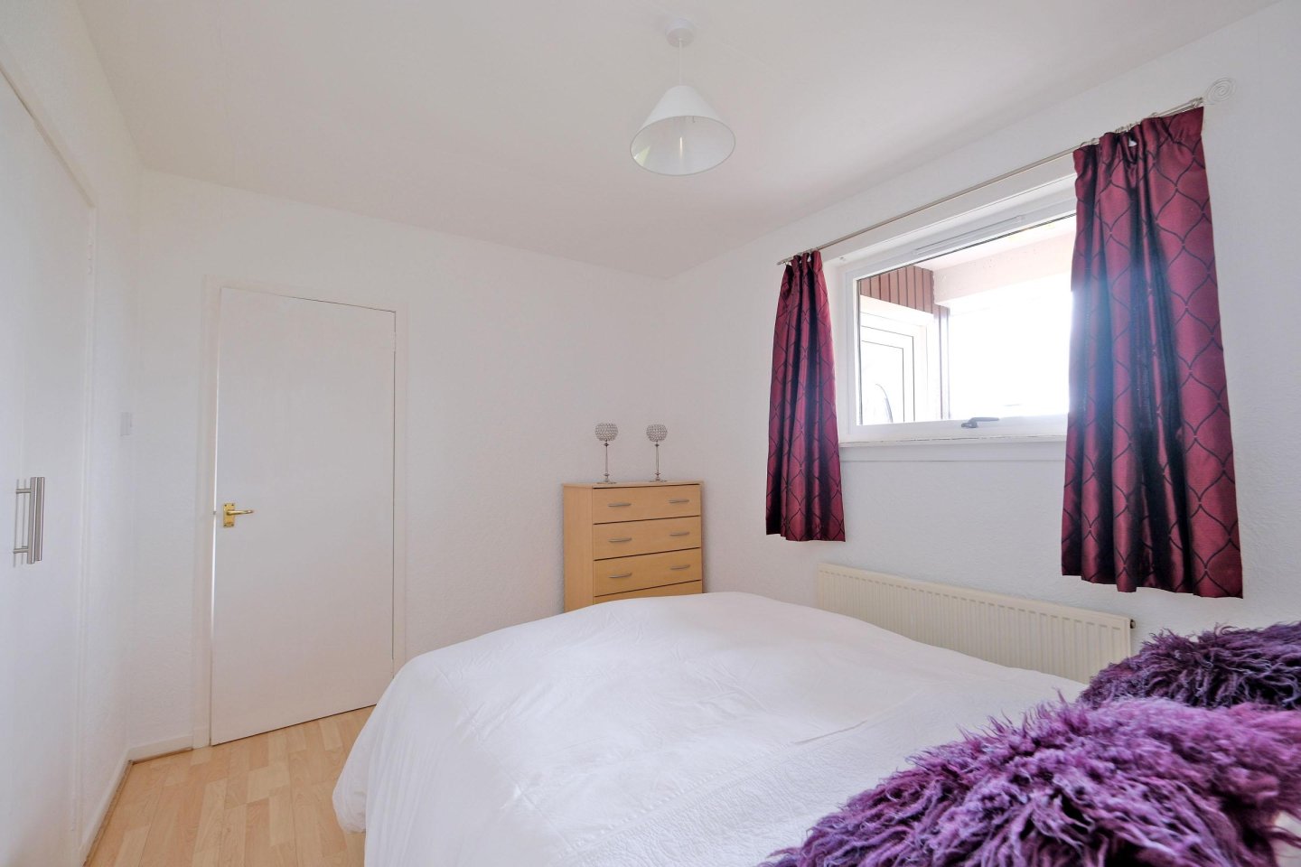 Double Bedroom: 3.43m x 2.74m (11’3" x 9’) approx. A good sized Double Bedroom with front facing window. Curtains. Twin built-in wardrobes providing considerable hanging and storage space. Laminate floor. Radiator. Ample power points. Ceiling light.