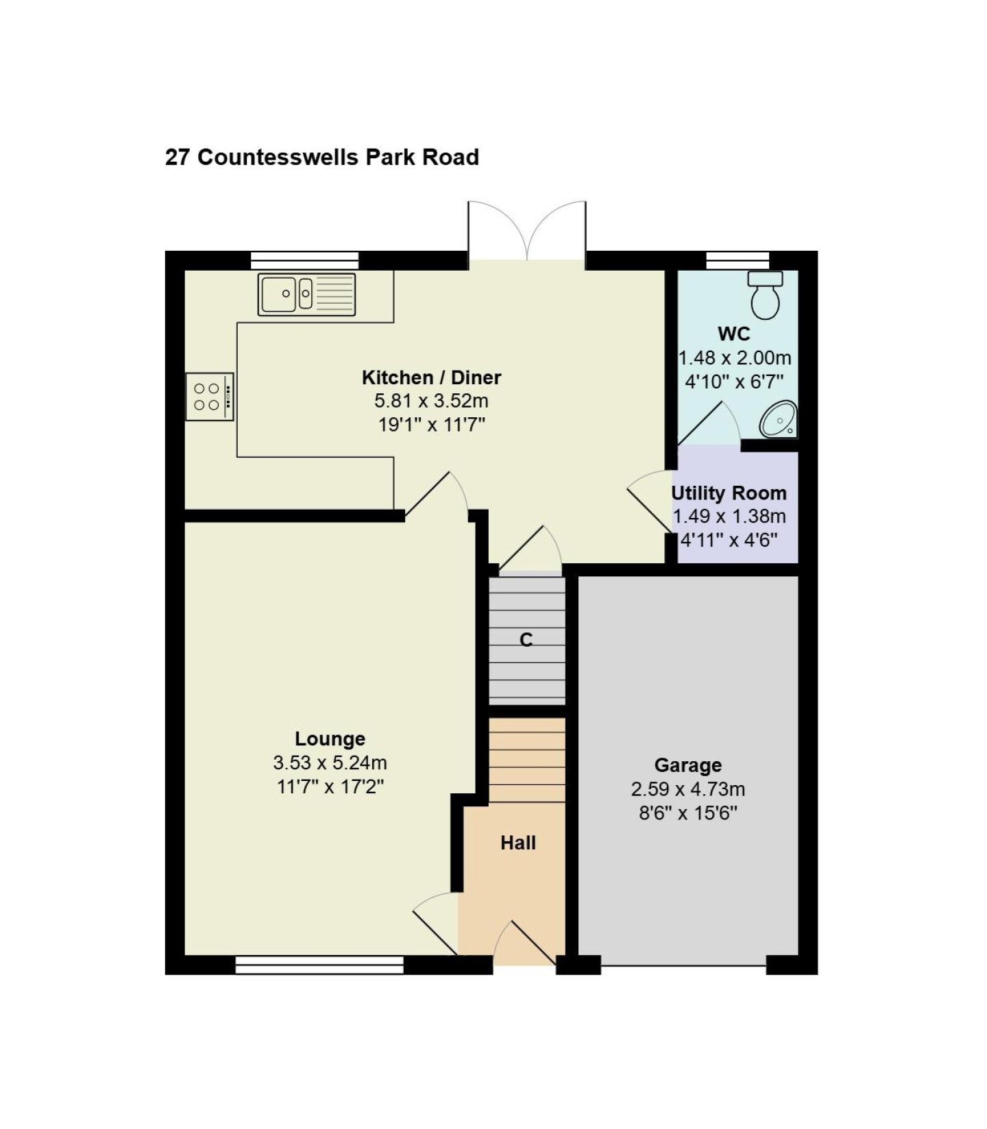 Cloakroom: 1.47m x 2.01m (4’10” x 6’7”) approx.