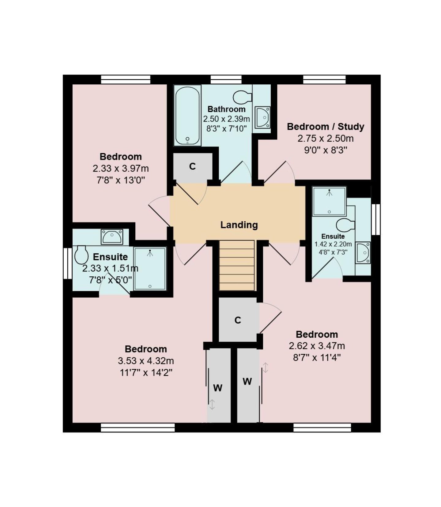 Master Bedroom: 4.32m x 3.53m (14’2” x 11’7”) approx.
