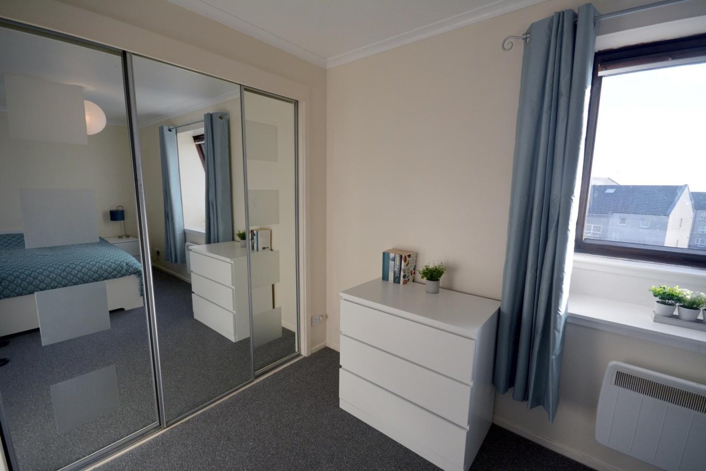 Double Bedroom: 4.11m x 2.54m (13'6" x 8'4") approx. Generously sized Double Bedroom. Window, with curtains, gives an excellent open view to the North Sea. Fitted wardrobe, fronted with sliding mirrored doors, with hanging rail and shelving. Fitted carpet. Electric panel heater. Central light fitment. Three single power points. TV socket. Telephone socket.