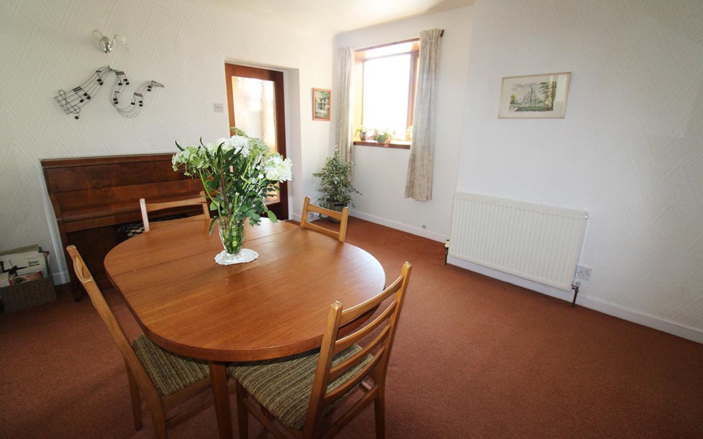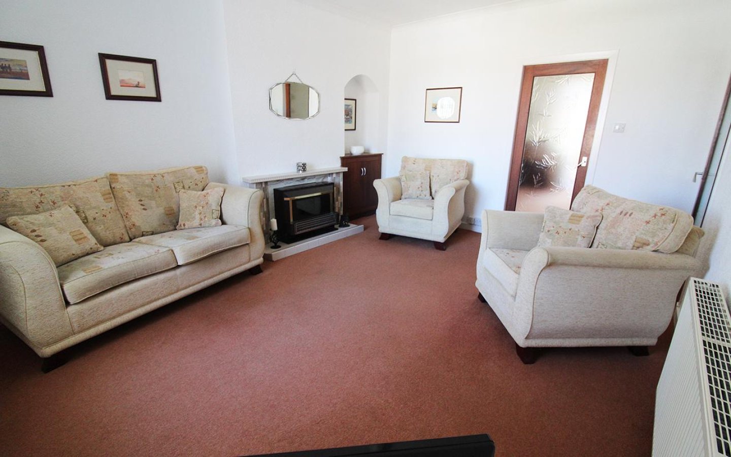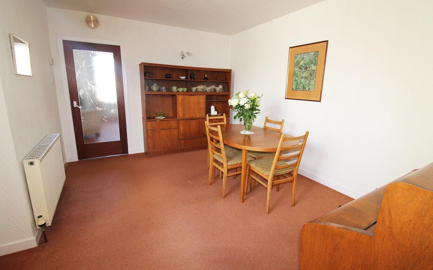 Access is via a glazed uPVC door into the carpeted vestibule which opens via a glazed door into the hall where the fitted carpet continues. The hall accesses the living room, bathroom and both bedrooms. The living room is a lovely bright room with a window to the front and a tiled fireplace which has an electric fire atop. Alcove with cupboard below and fitted carpet. A glazed door from the living room leads into the dining room.