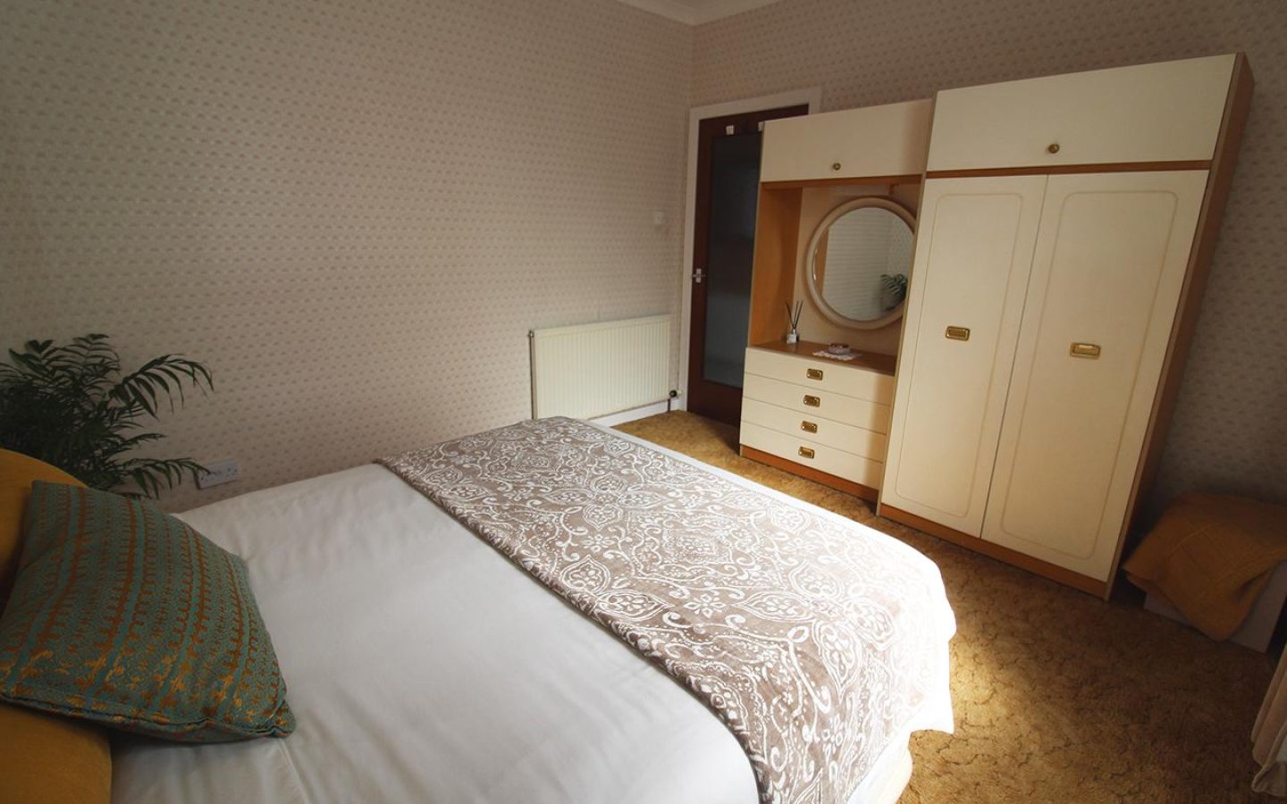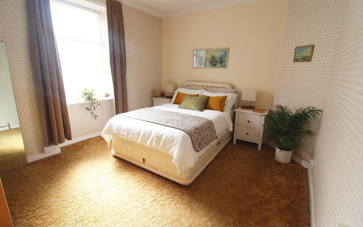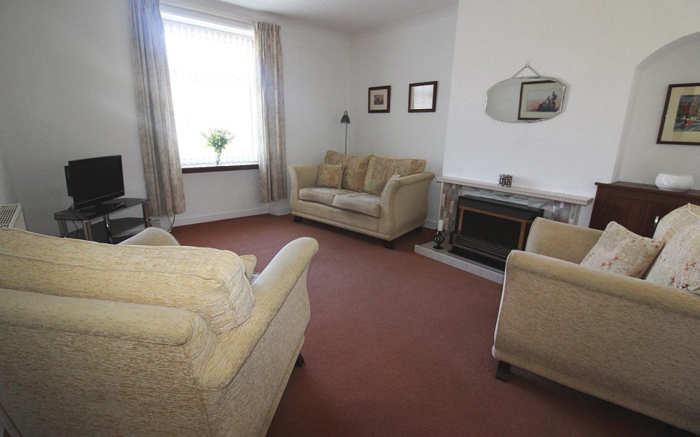 Access is via a glazed uPVC door into the carpeted vestibule which opens via a glazed door into the hall where the fitted carpet continues. The hall accesses the living room, bathroom and both bedrooms. The living room is a lovely bright room with a window to the front and a tiled fireplace which has an electric fire atop. Alcove with cupboard below and fitted carpet. A glazed door from the living room leads into the dining room.