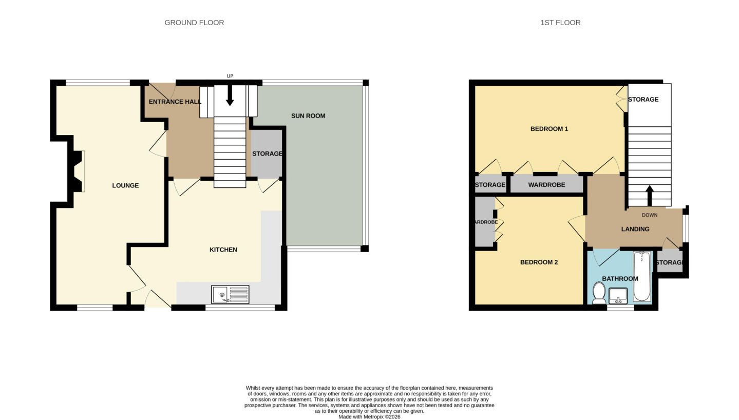 First Floor – The stairs lead onto the landing where access to both bedrooms and bathroom can be gained. A side facing window provides natural light and overlooks the side path and garden.