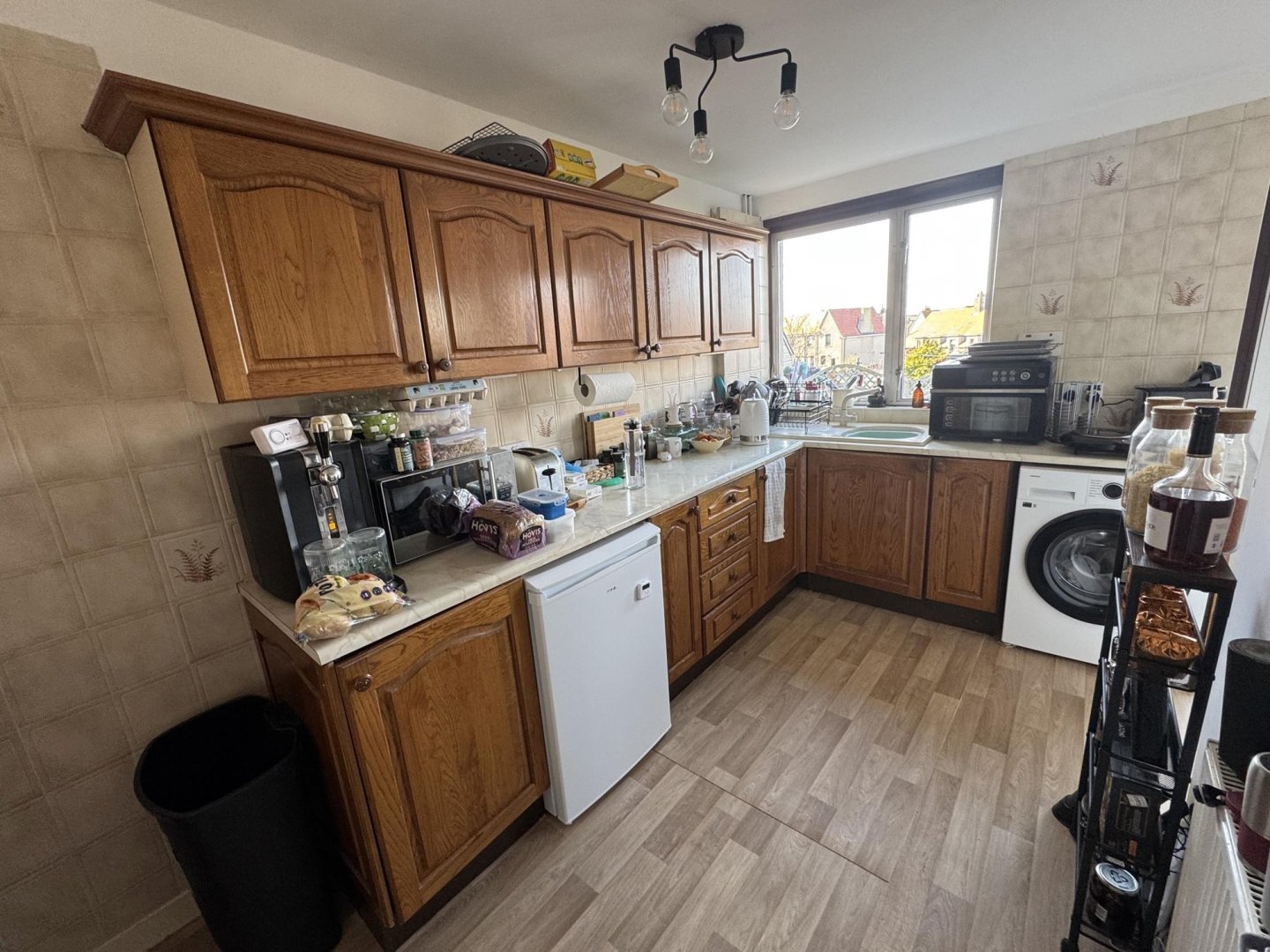 Accessed via the lounge or entrance hall, the kitchen has ample base and wall units with undercounter space for white goods and a sink with drainer and mixer tap. Rear facing window overlooks rear garden. Access to the rear garden can be gained via the partially glazed opaque exterior door. Large storage cupboard houses electrics.