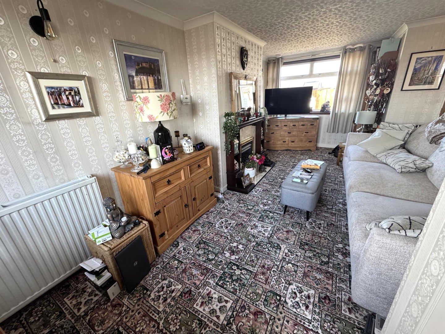 Rear facing window over looks rear garden whilst front facing window over looks the off-street parking/driveway both providing natural light. There are 2 partially glazed doors to enter the lounge, one from the entrance hall and one from the kitchen. The gas fireplace with wooden frame and marble surround is the focal point of the room.