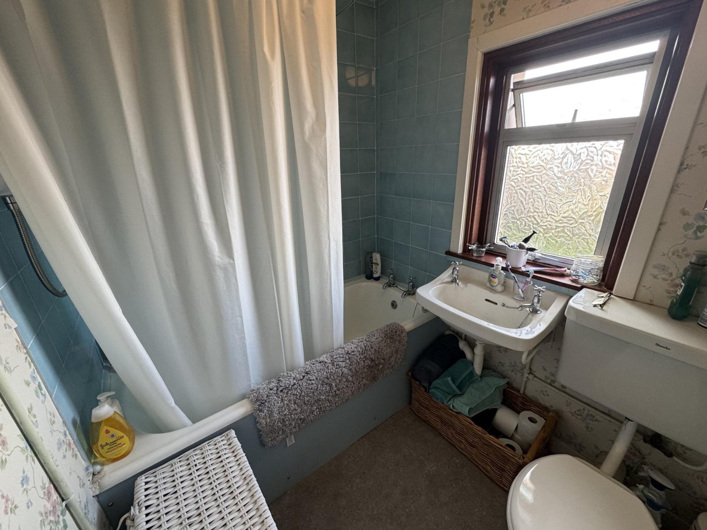 The bathroom consists of a 3-piece suite of W/C, wash hand basin with two taps and bath with overhead shower. A rear facing opaque window provides natural light.