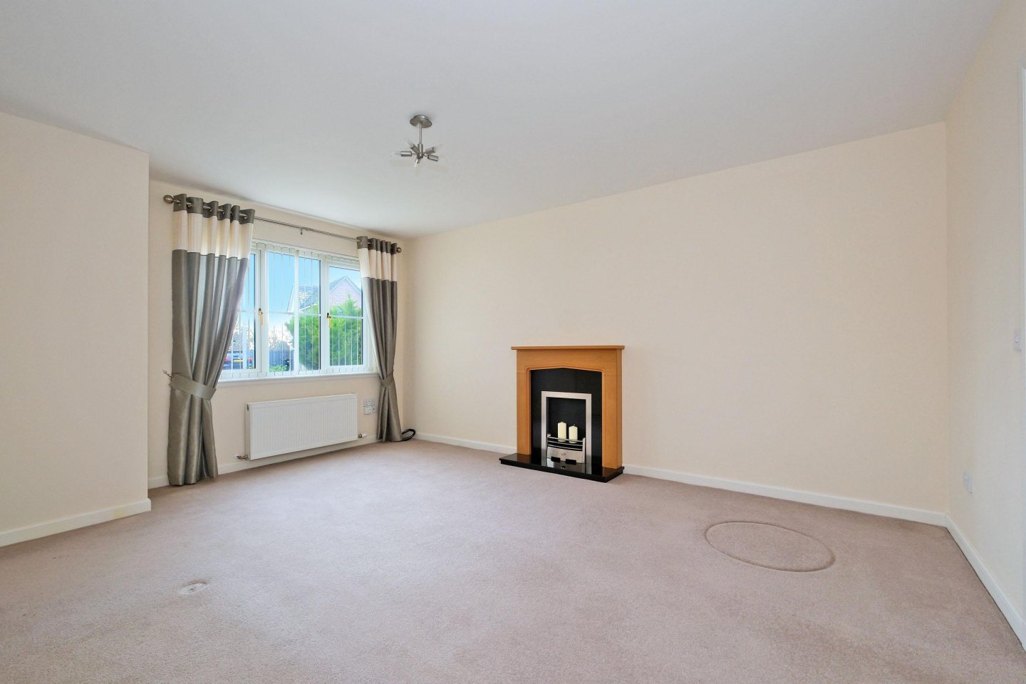 Lounge: 4.90m x 3.75m (16’1" x 12’4") approx. A bright and spacious “livingroom” with large window in 3 sections with vertical blinds and full length curtains and tie-backs. Fitted carpet. Feature fireplace with contemporary gas fire and granite effect inset and hearth. Radiator. Ample power points. TV aerial point. Large understairs cupboard (housing consumer unit).
