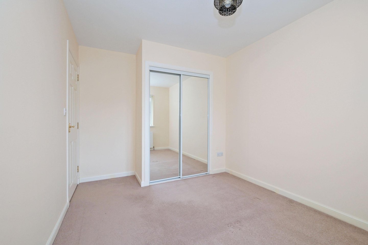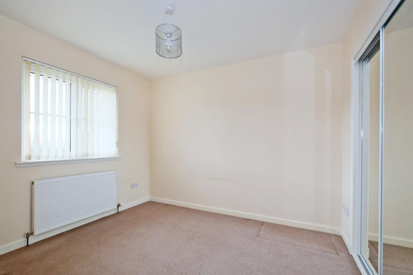 Bedroom 2: 3.20m x 2.71m (10’6" x 8’11") approx. With window overlooking the front garden with vertical blinds. Built in mirrored wardrobe with hanging rail and shelf providing considerable storage. Fitted carpet. Ceiling light. Radiator. Ample power points.