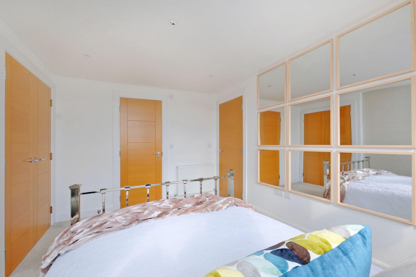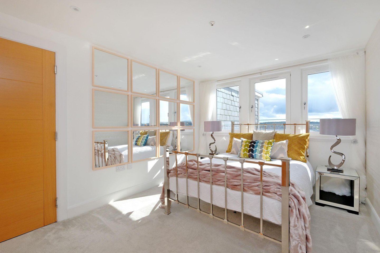 Master Bedroom with En-Suite Shower Room: 4.87m x 3.50m (16’ x 11’6") approx. The Master Bedroom with En-Suite Shower Room. Front facing windows providing open northerly views over the City rooftops. Full length curtains and tie-backs. Built-in wardrobes with hanging rail and shelving. Two further built-in wardrobes. Radiator. Ceiling downlighters. Ample power points. TV aerial and telephone points.