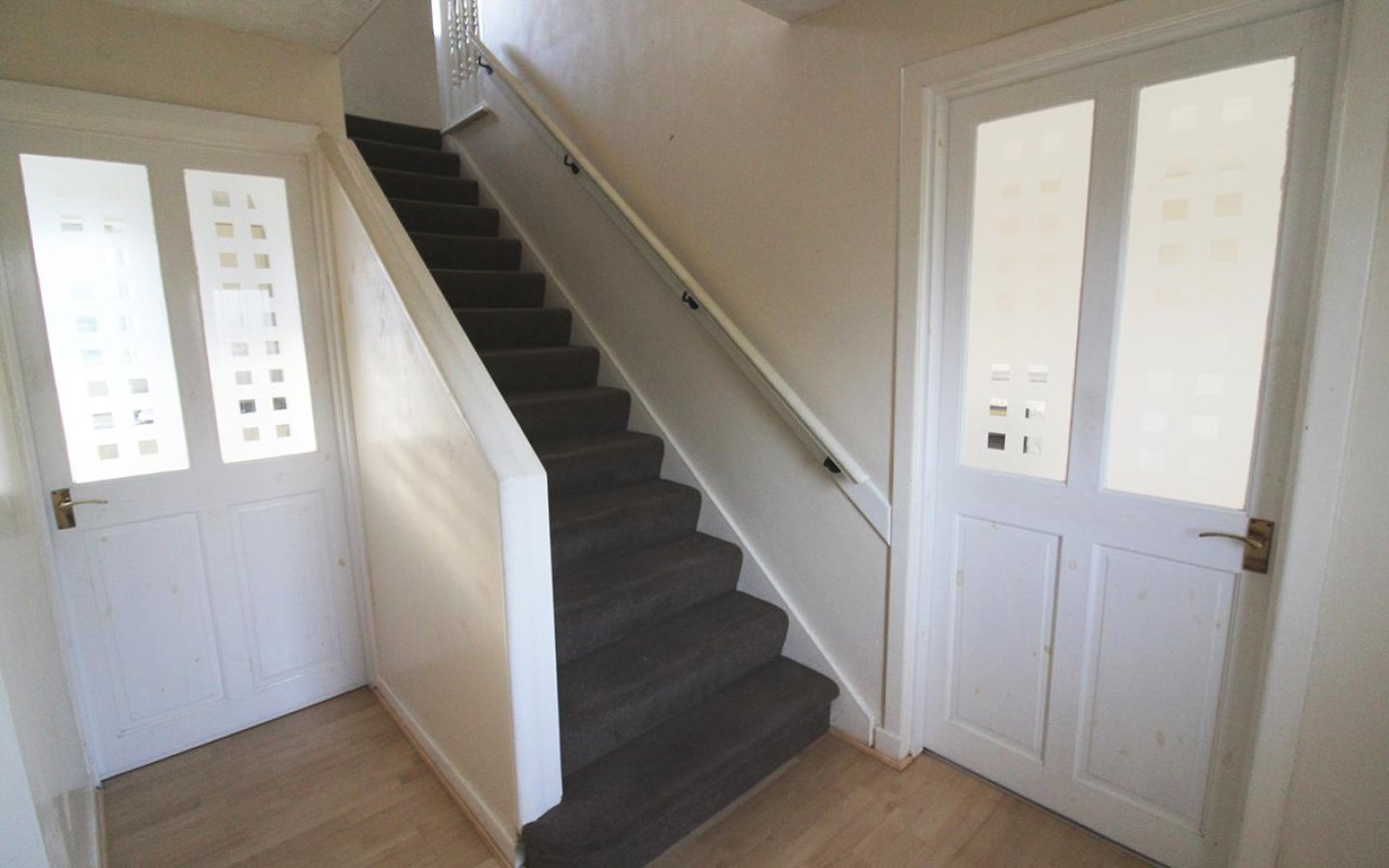 A carpeted staircase with wooden handrails leads to the first floor landing which access all three bedrooms and the bathroom. Bedroom 1 is a double with front-facing window and a fitted carpet. Bedrooms 2 is also a good sized double, front facing with vinyl flooring. Bedroom 3 is rear-facing and has a fitted carpet.