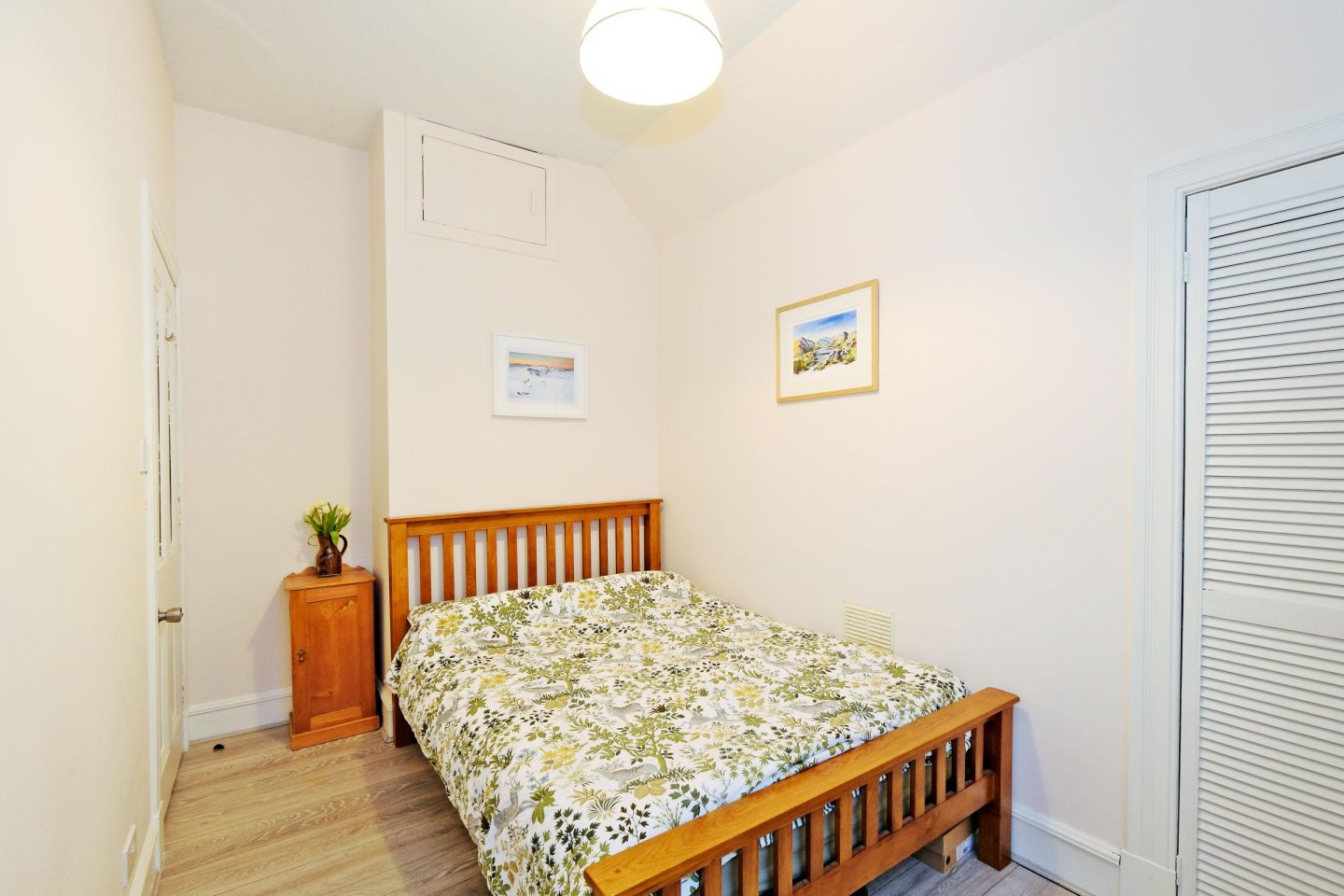 Double Bedroom 2: 3.81m x 2.26m (12’6" x 7’5") approx. Another good sized Double Bedroom with rear facing window. Curtains. Shelved cupboard housing central heating boiler. High level storage cupboard. Grey grain effect laminate flooring. Radiator. Ceiling light. Ample power points.