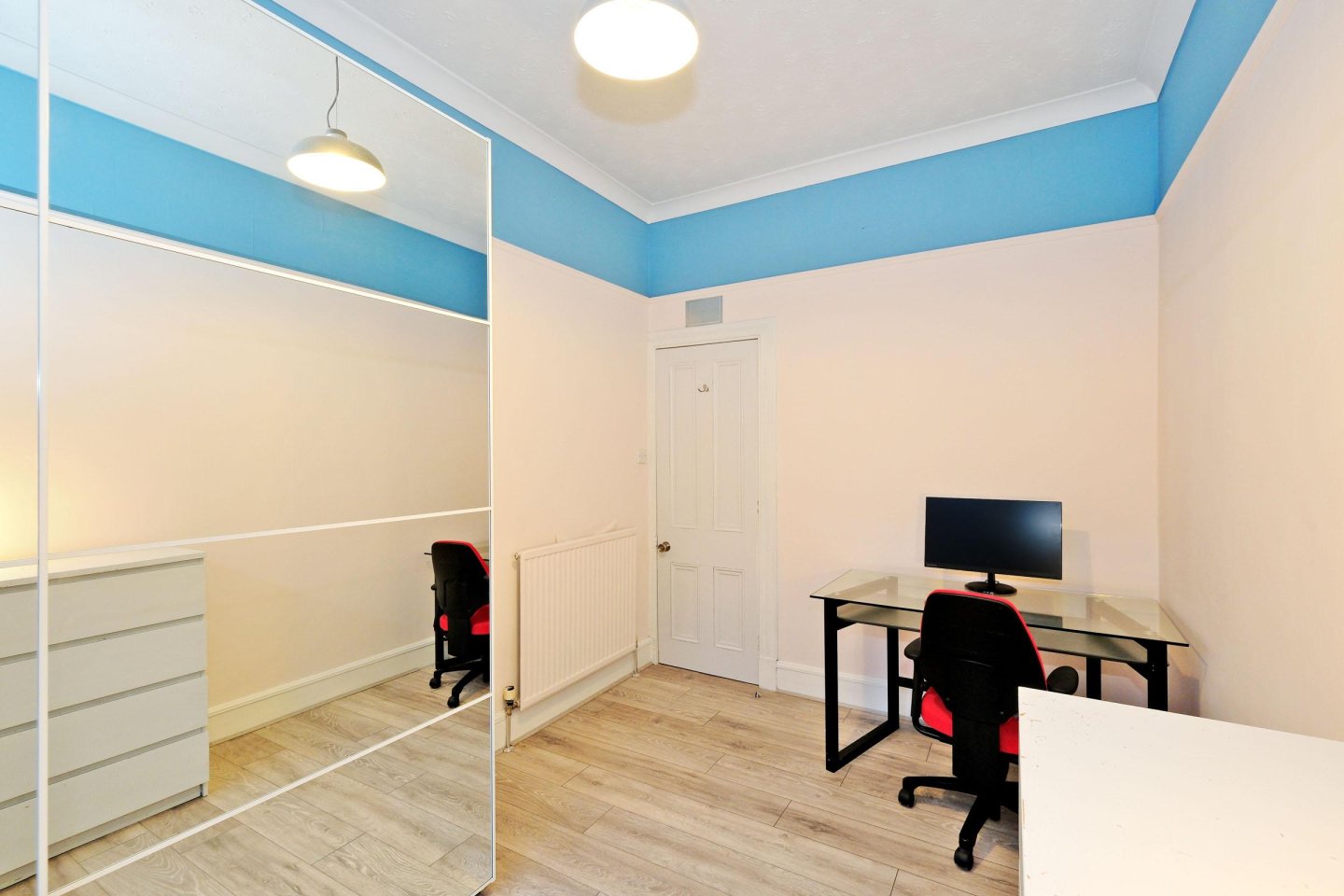 Double Bedroom 1: 4.19m x 2.61m (13’9" x 8’7") approx. A good sized Double Bedroom with front facing window. Curtains. Grey grain effect laminate flooring. Ceiling cornice. Picture rail. Ceiling light. Radiator. Ample power points. NB wardrobe to remain.