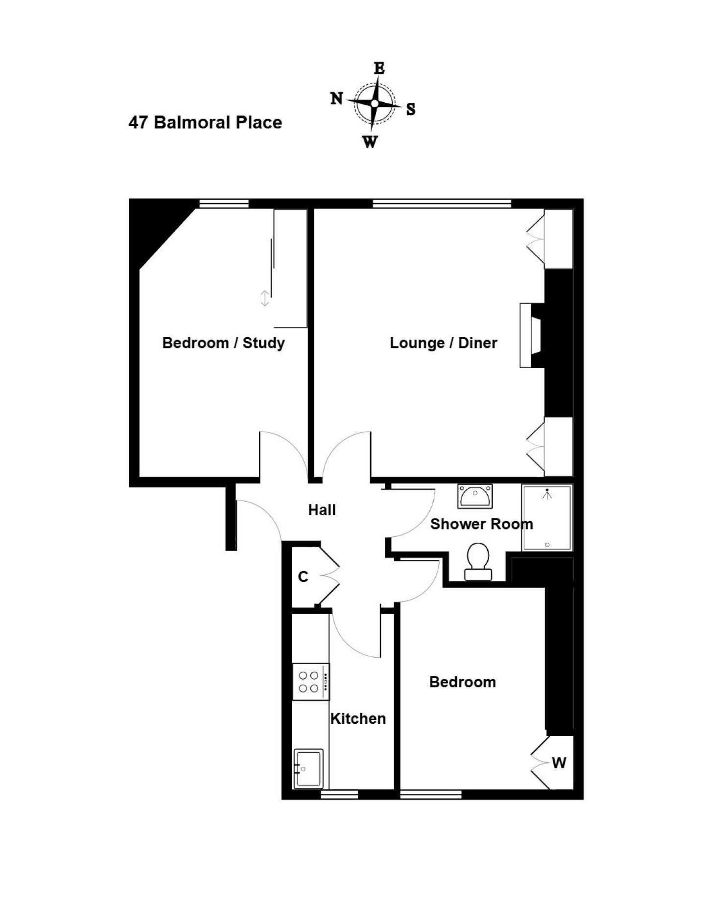 Travelling west on Union Street, turn left into Holburn Street and continue ahead through the traffic lights with Great Western Road. Upon reaching the Great Southern Road roundabout take the third exit, still remaining on Holburn Street. At the mini-roundabout exit second left onto Broomhill Road. Balmoral Place is the second road on the right, with number 47 located on the left hand side.