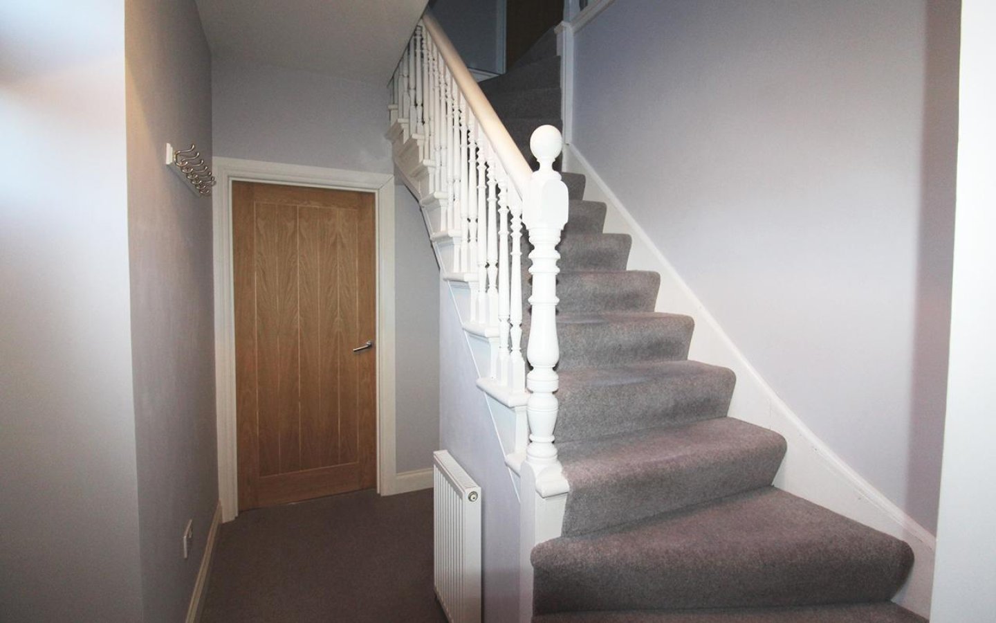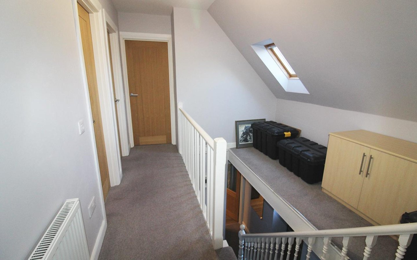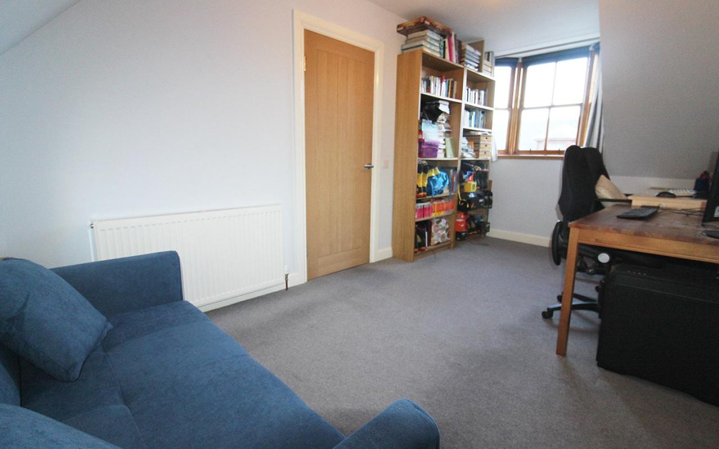 The hall carpet continues up the wooden staircase to the first floor landing which accesses two further double bedrooms and bathroom. Storage is available via a large cupboard which also houses the boiler and an area of landing under the roof window. Bedroom 1 is a dual aspect room with a bay window to the front and a roof window to the rear. This room has a walk-in storage area which historically would have been the access to the external staircase. Bedroom 3 also has a bay window to the front and is currently used as an office. The bathroom is fitted with a white three piece suite, consisting of a wc, handbasin and bath with electric shower. Aqua panelling around the bath and handbasin. Towel rail and bathroom accessories. Frosted window to the rear.