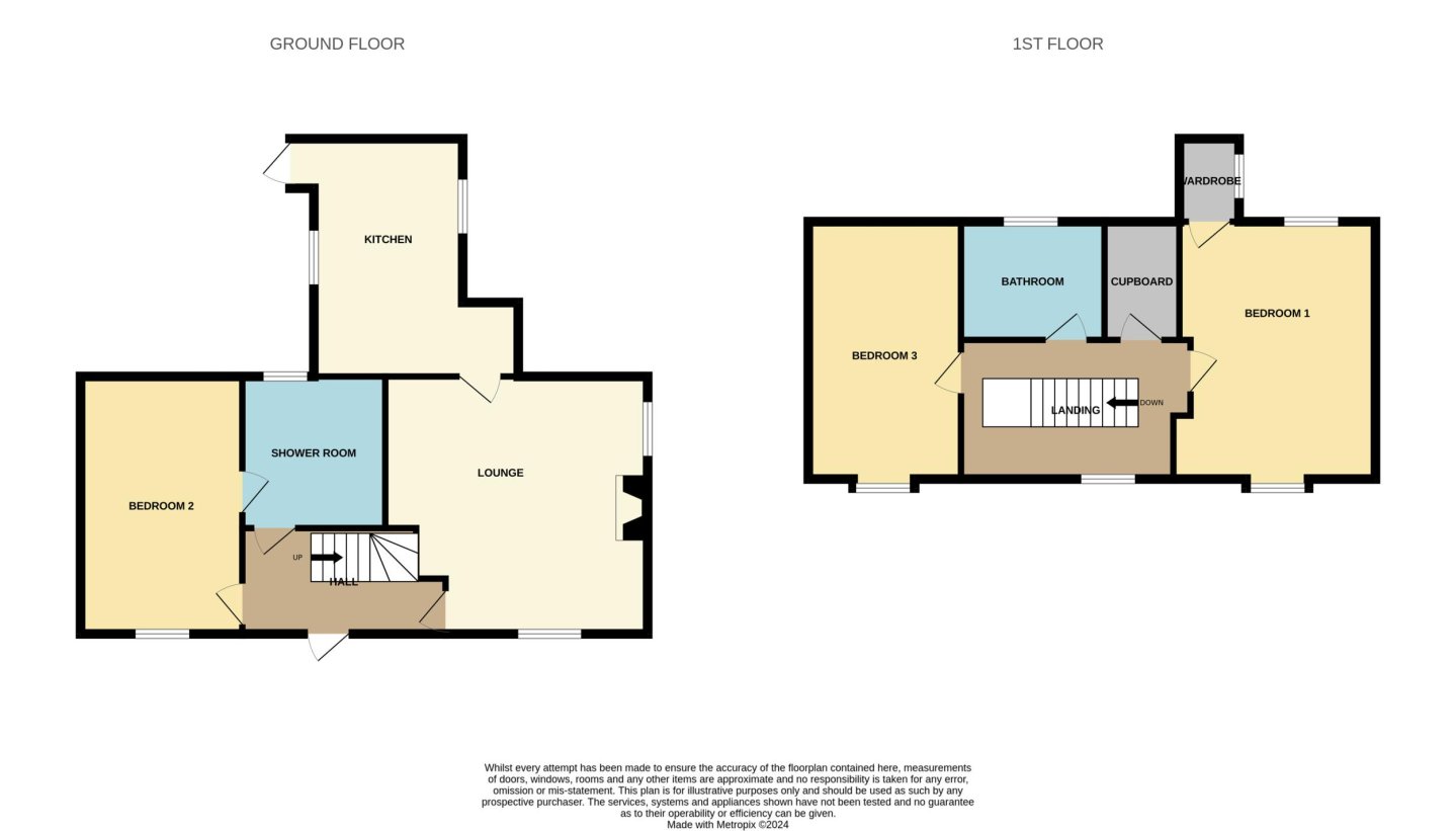 The ground floor bedroom has a double window overlooking the front of the property and has a door to the shower room which can also be accessed from the hall. The shower room has a frosted window to the rear and is fitted with a white suite consisting of w.c, handbasin and mains shower within a large tiled cubicle. The shower room is finished with a chrome towel rail and bathroom accessories.