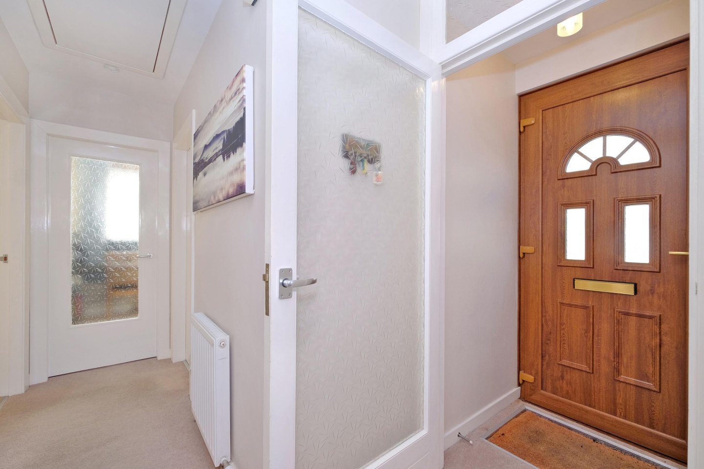 Entrance Vestibule: Wood effect UPVC front door. Fitted carpet with matwell. Ceiling light. Meter cupboard. Glazed door to Hallway.