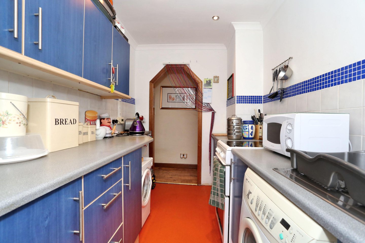 LOUNGE: (14’9” x 12’2” approx) Bright and airy lounge with front aspect. Further small window to the side. Wall mounted gas fire with recess either side. Cupboard housing hot water tank. Laminate wood effect flooring.