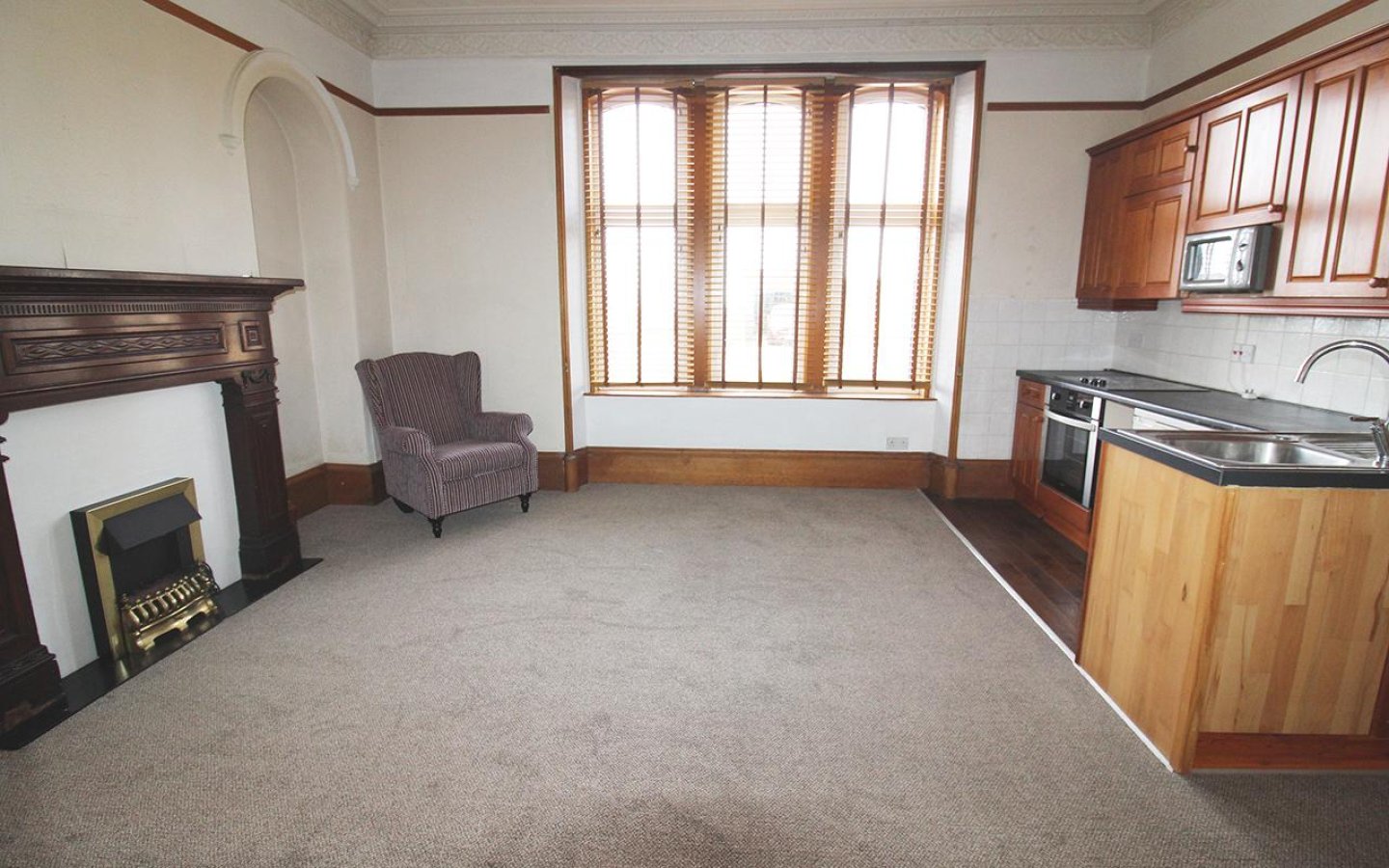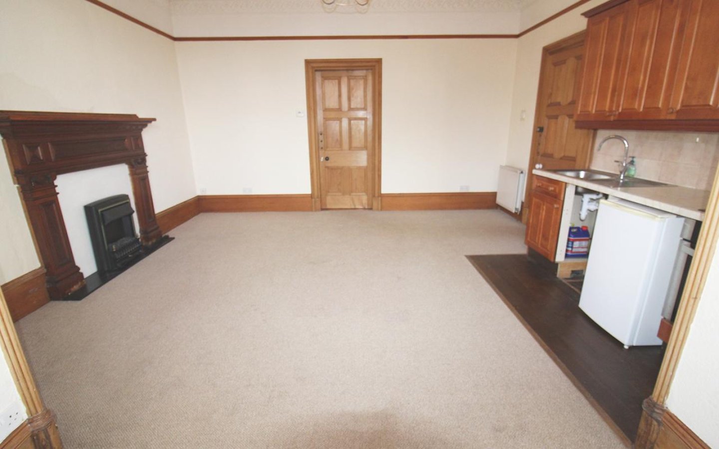 The first ground floor public room has a large bay window overlooking the front of the property and retains lots of traditional features with the focal point being the beautifully carved wooden fireplace. This room retains a small kitchenette. Directly from the living room is a double bedroom which overlooks the rear garden. The bedroom has an ensuite shower room and built-in wardrobe.
