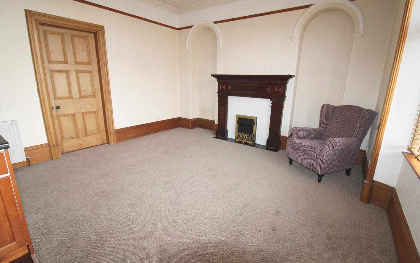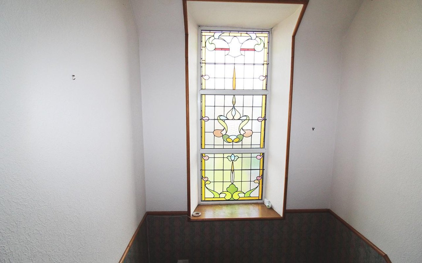 The property is accessed via a glazed uPVC door into the tiled vestibule which opens via a glazed internal door with an etched glass panel into the hall. The carpeted hall gives access to the two front facing public rooms, the staircase to the first floor and the rear vestibule. The carpeted staircase to the first floor has a curved banister with decorative spindles up to the half landing which has a beautiful stained glass window. The rear vestibule provides under stair storage and a uPVC door out to the rear garden.