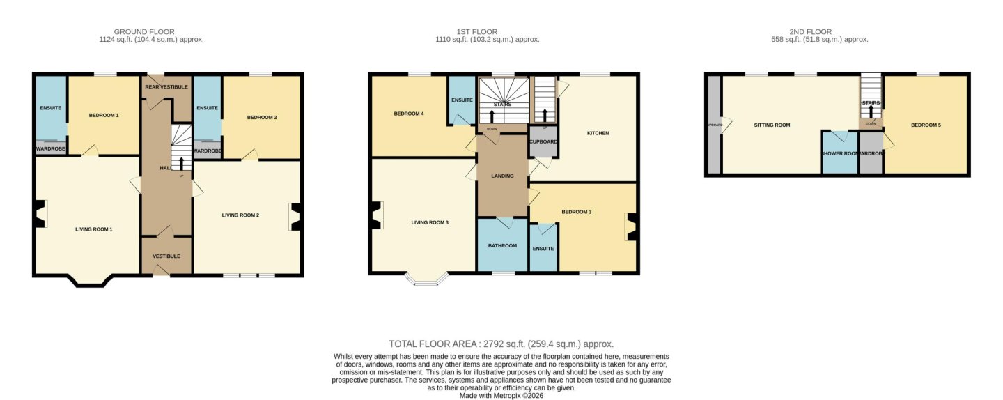 Ensuite 3.46 x 1.20m Bed 3 4.00 x 4.75m Shower Room 1.70 x 1.65m