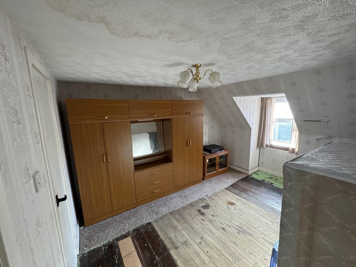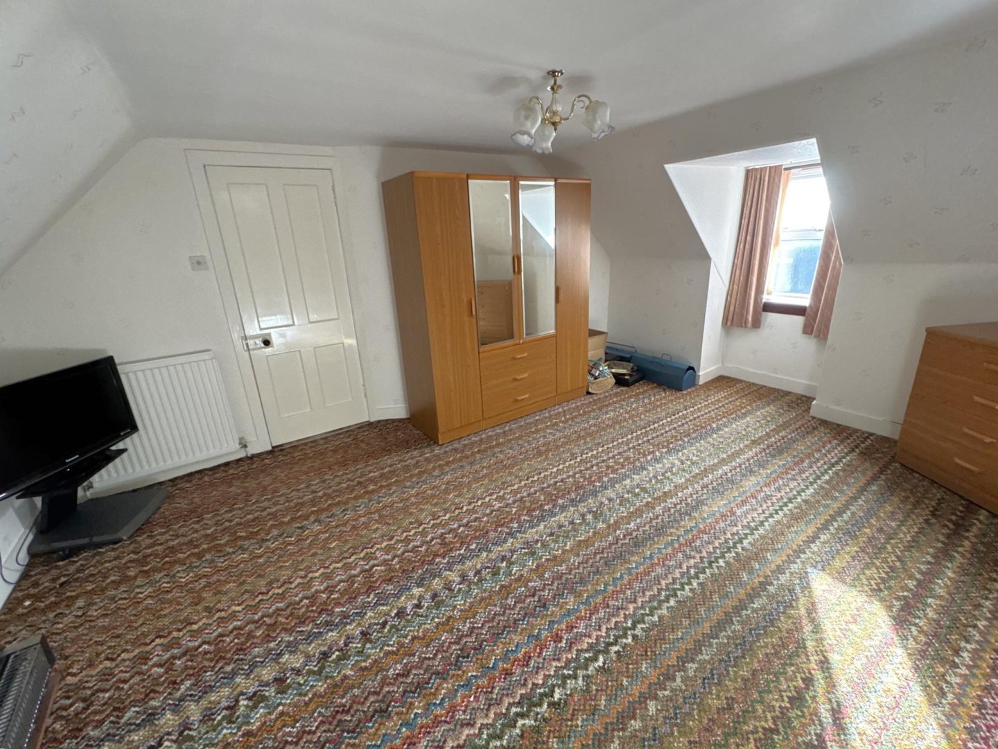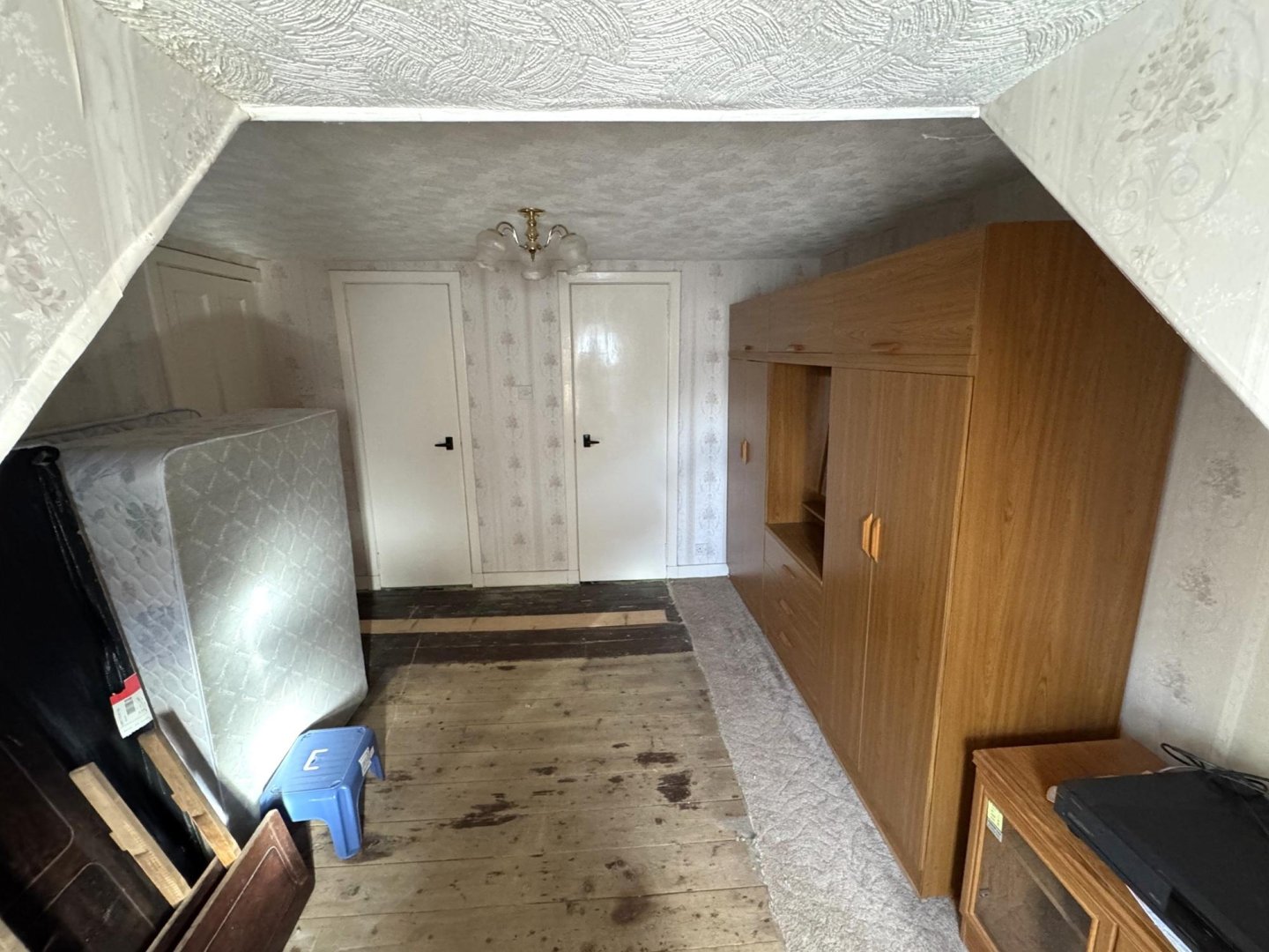 provides storage. A front facing opaque window provides natural light. Loft hatch can be accessed.