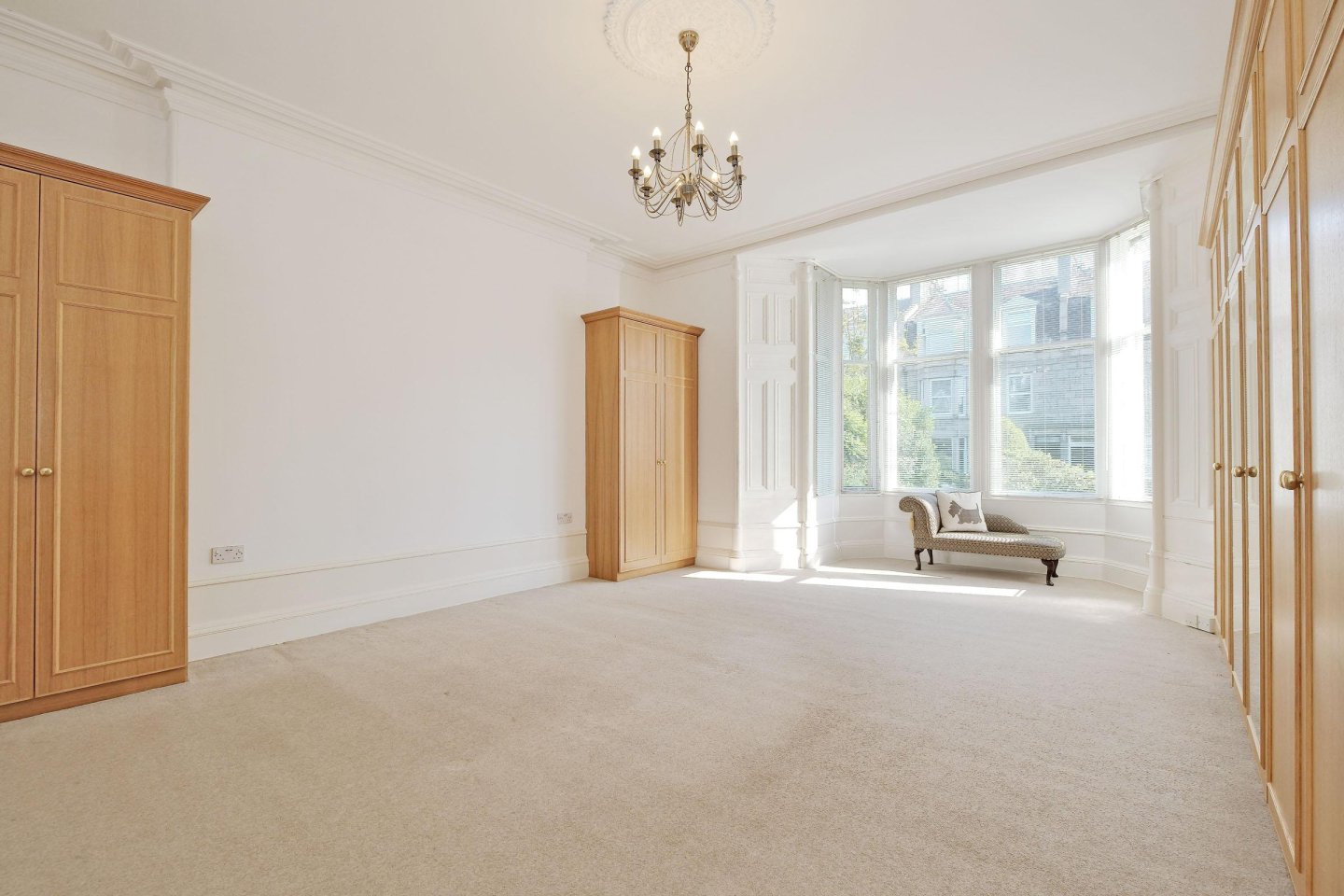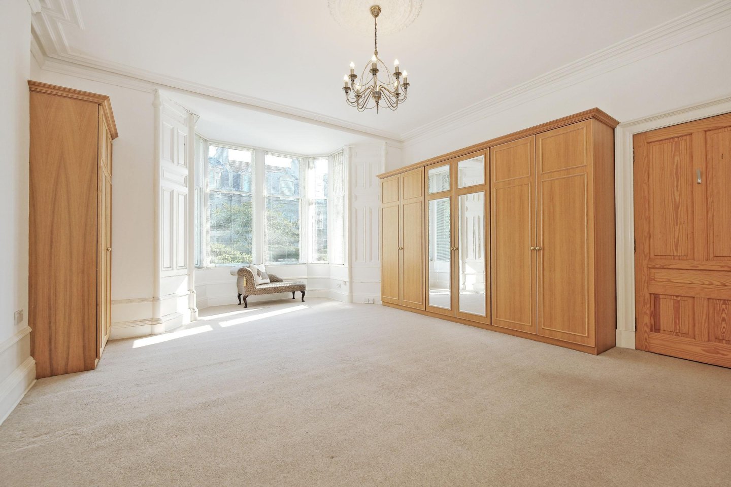 Double Bedroom: 6.90m x 4.95m (22’8" x 16’3") approx. A large, well proportioned, Double Bedroom with bay window overlooking the front garden. Venetian blinds. Fitted carpet. Plaster cornicing with matching ceiling rose. Panelled window alcoves. Deep moulded skirtings. Built-in wardrobes with further built-in alcove wardrobe providing considerable hanging and storage space. Ceiling light. Ample power points. Telephone point.