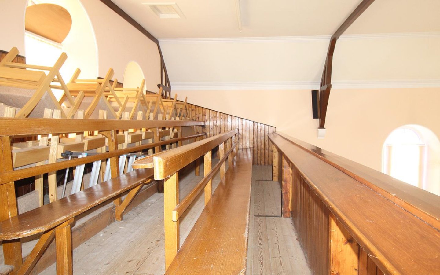 The gallery is accessed from a timber staircase within the vestibule and is situated on the south side of the church with fitted pews overlooking the main hall.