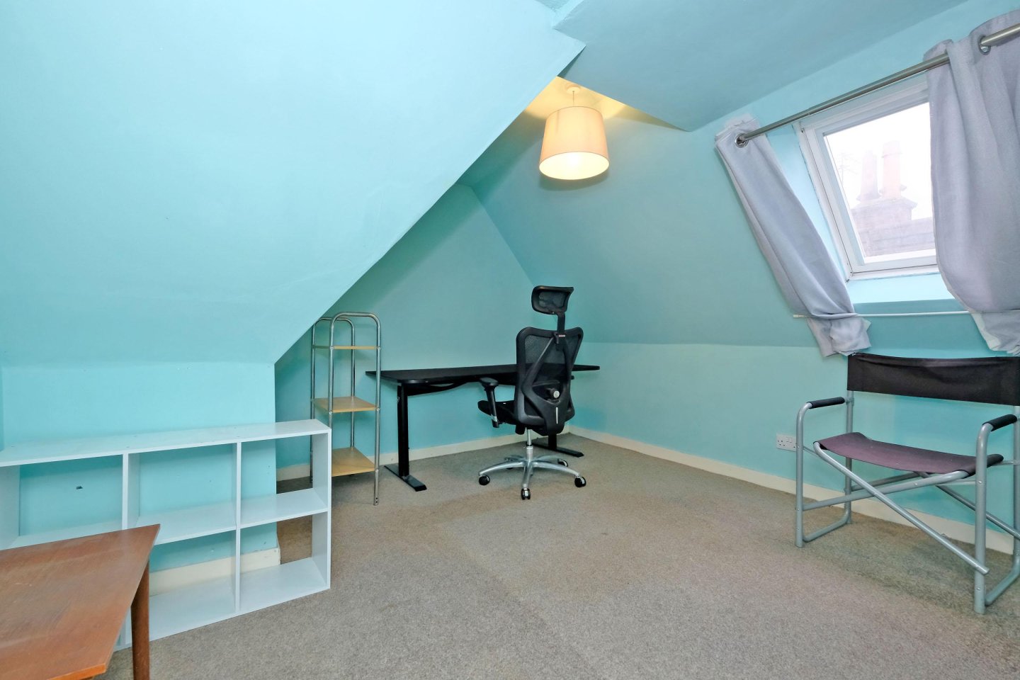 Attic Room One: 3.78m x 3.35m (12’5” x 11’) approx. Velux window with curtains. Fitted carpet. Single radiator. Central light fitment.
