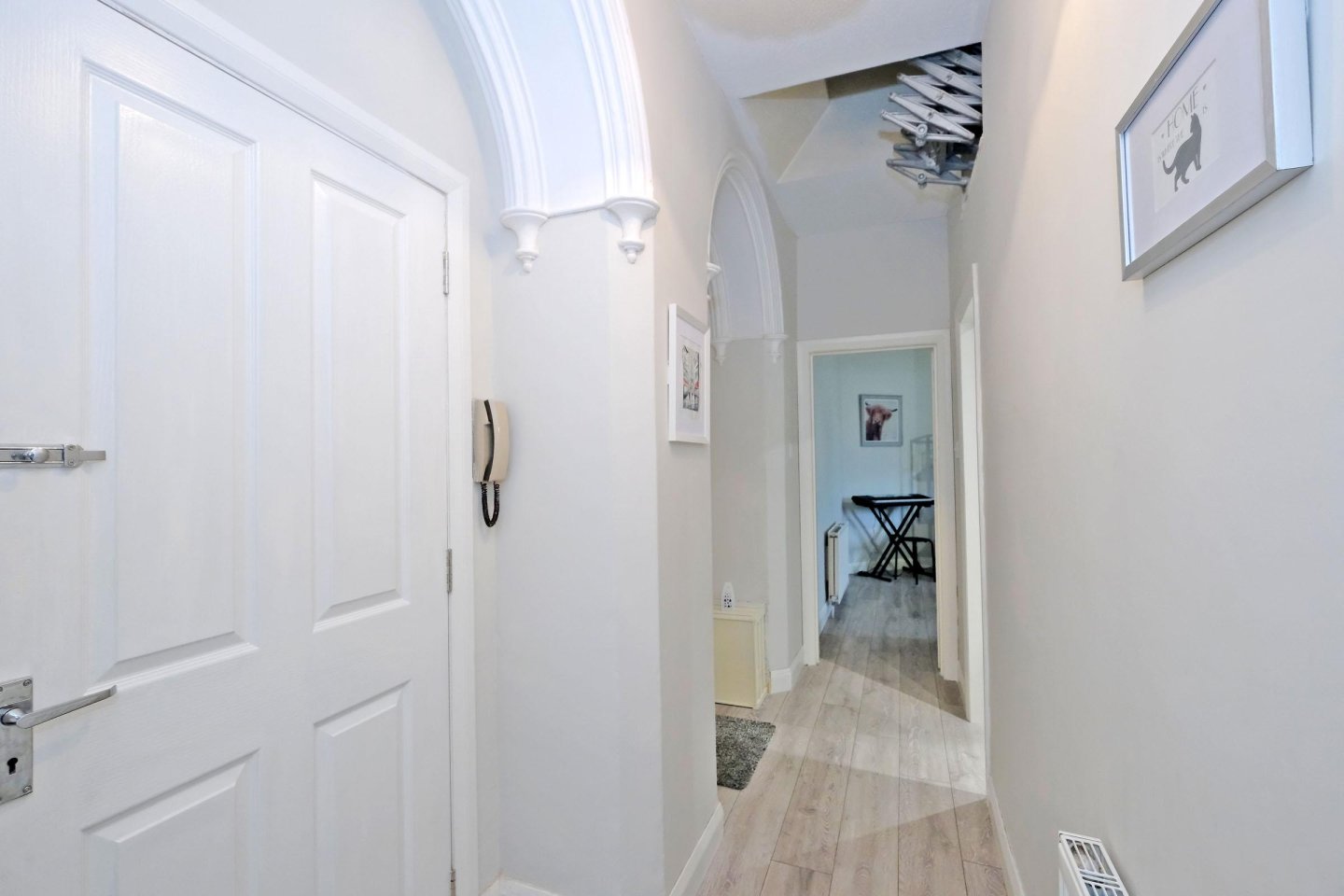 We are delighted to offer for sale this one bedroom upper floor flat, with single garage, which forms part of an imposing and traditional period dwellinghouse. The property benefits from gas central heating, double glazing and also two attic rooms which are currently used for office space. The accommodation on offer comprises of a Hallway, Lounge, Kitchen, Double Bedroom, Shower Room and two Attic Rooms with access to the attic floor via a pull-down ladder. Externally, the communal areas are very well maintained, and the internal hallways boast lovely traditional features including a sweeping staircase and elegant plaster work. Set back from Erskine Street, there is ample off-street parking, and a driveway leads to the Single Garage with up and over door. There is a communal garden area and a bin store.