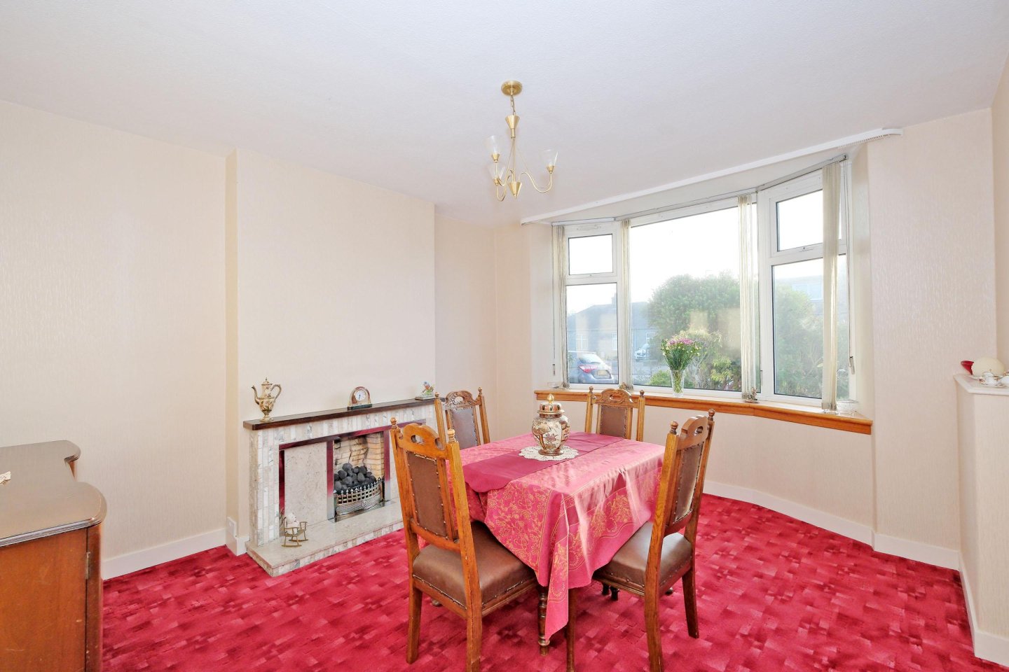 Dining Room: 4.27m x 3.71m (14’ x 12’2”) approx. Bay window with vertical blinds overlooking the front garden. Feature fireplace. Fitted carpet. Double radiator. Central light fitment.