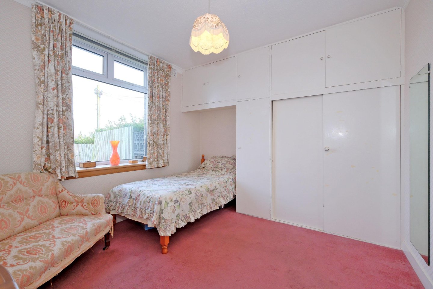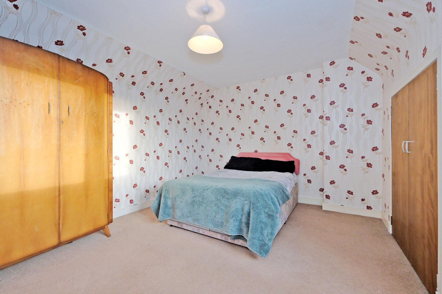 Double Bedroom Two: 4.98m x 4.57m (16’4” x 15’) approx. Window with curtains overlooking the front garden. Fitted cupboard with hanging rail and shelving. Fitted carpet. Double radiator. Central light fitment.