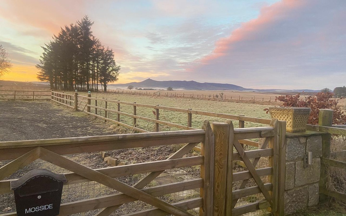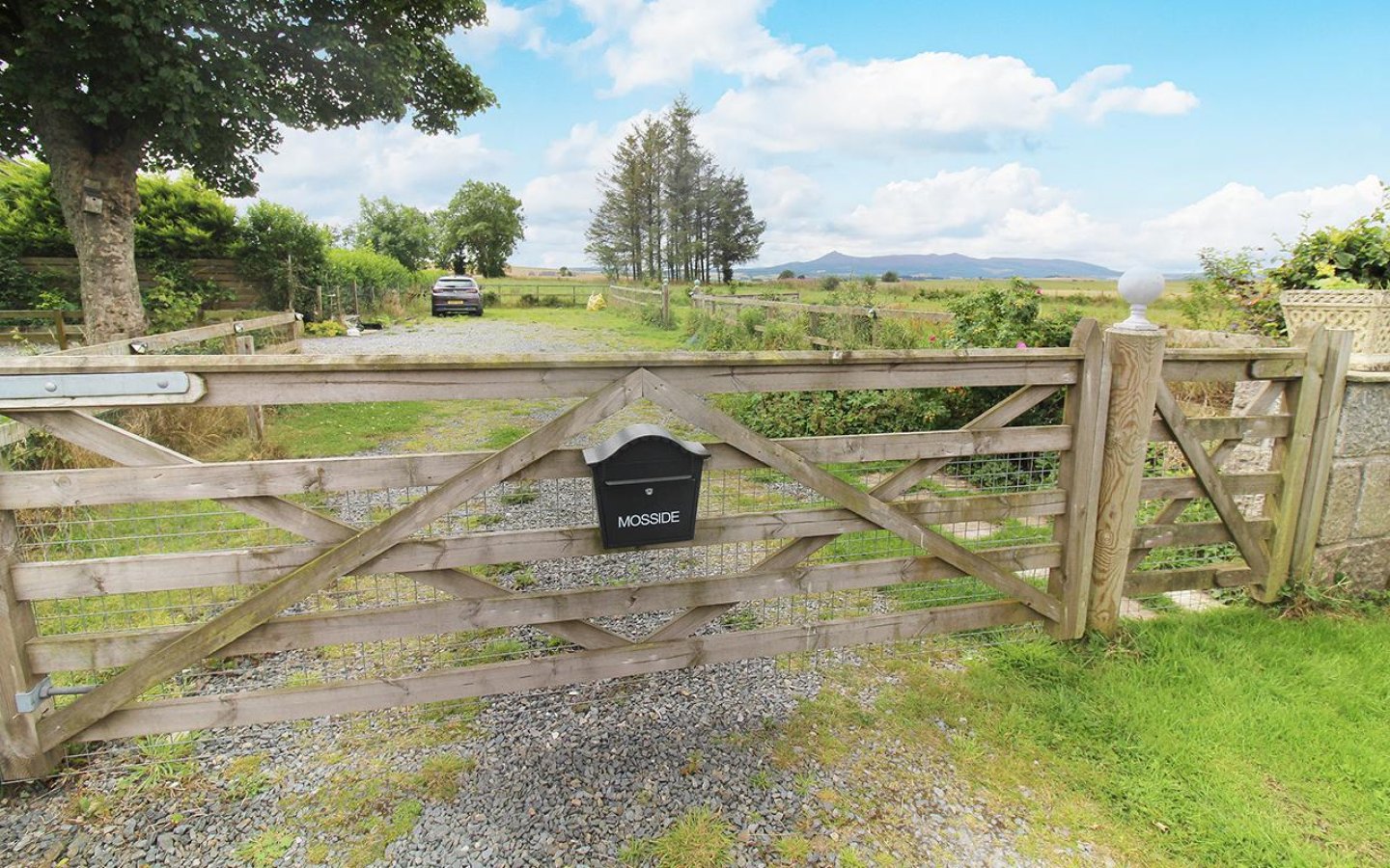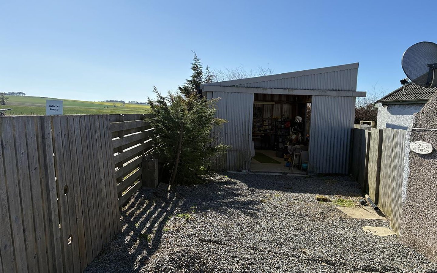 Mosside sits on a generous plot with areas of garden laid to lawn, stone chips, patio, mature planting, trees, hedging and a large 1 acre paddock. The garden is divided into two areas, one to the northwest accessed via a metal gate with Aberdeen granite pillars and a separate south facing area which has an established beech hedge and access the large shed. The large agricultural shed benefits from power and light. Within the plot is a parking are for several vehicles.