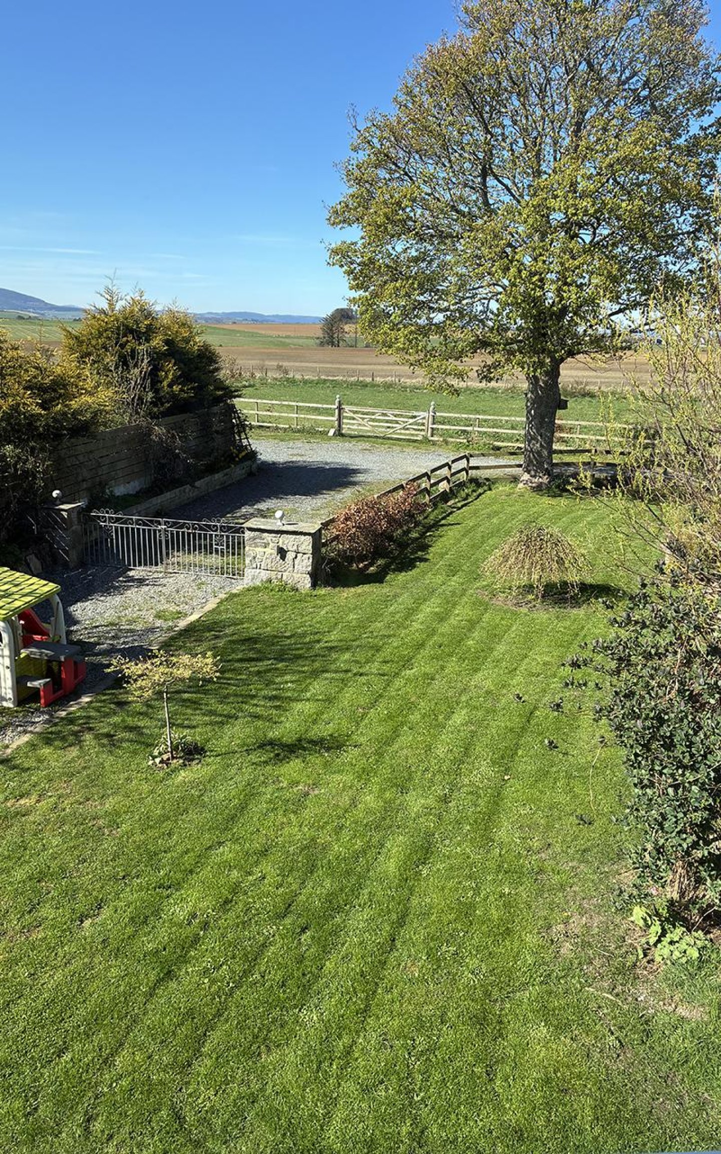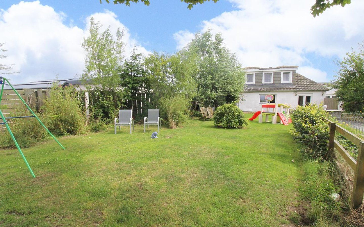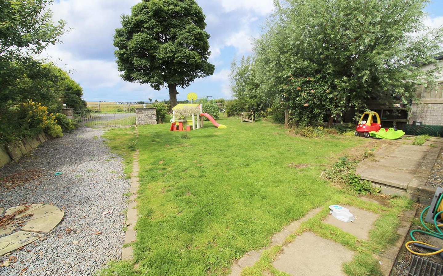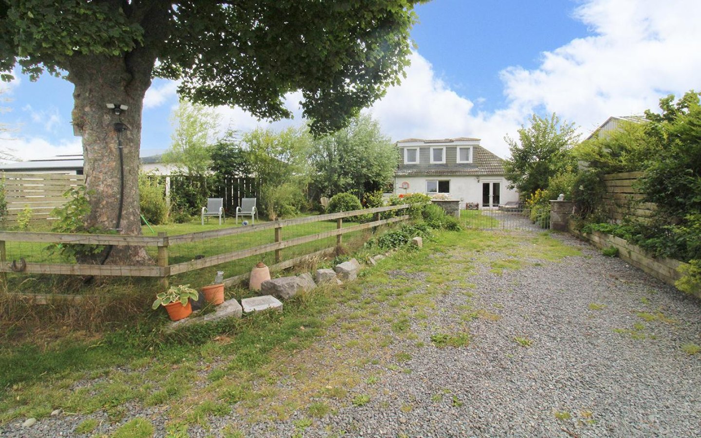 Mosside sits on a generous plot with areas of garden laid to lawn, stone chips, patio, mature planting, trees, hedging and a large 1 acre paddock. The garden is divided into two areas, one to the northwest accessed via a metal gate with Aberdeen granite pillars and a separate south facing area which has an established beech hedge and access the large shed. The large agricultural shed benefits from power and light. Within the plot is a parking are for several vehicles.
